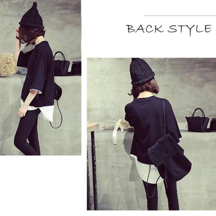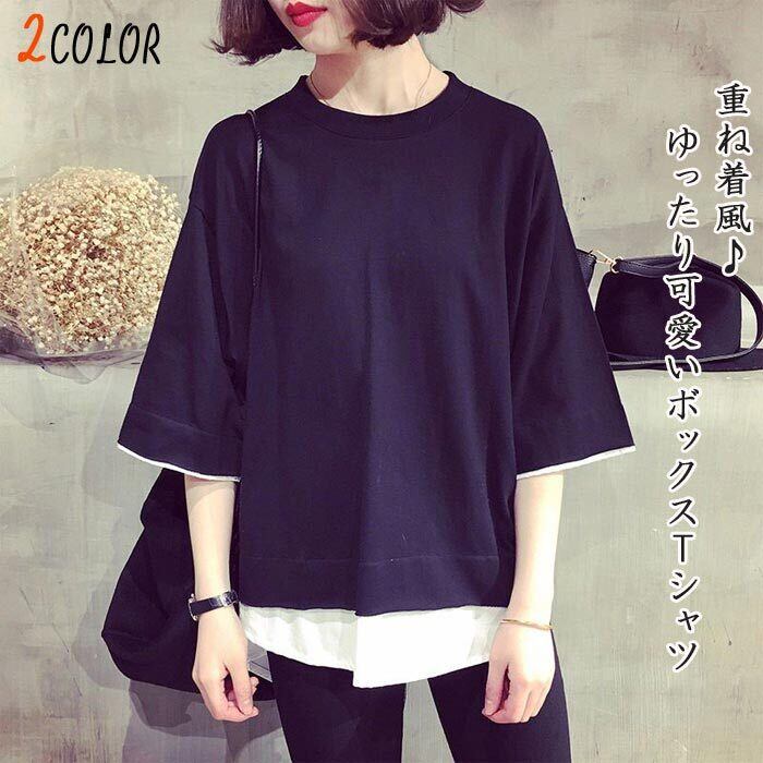 2COLOR★重ね着風♪ゆったり可愛いボックスTシャツ【送料無料】【予約商品】 nc0002