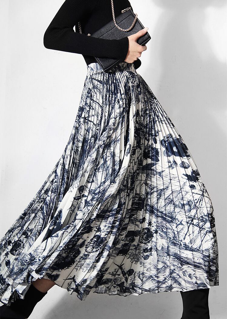 デザインプリント ハイウエスト プリーツ スカート ロング 【送料無料】【予約商品】nc0105