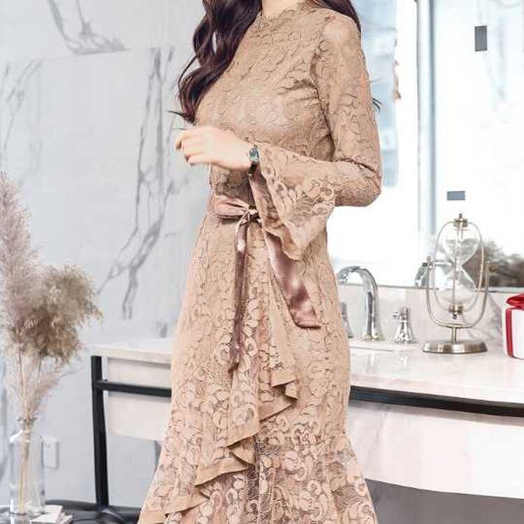 2COLOR ワンピース ドレス レース ティアードフリル 花柄 膝丈 フィッシュテール お呼ばれワンピ 結婚式 長袖 レトロ クラシカル レディース ファッション 20代 30代 40代【送料無料】【予約商品】nc0316