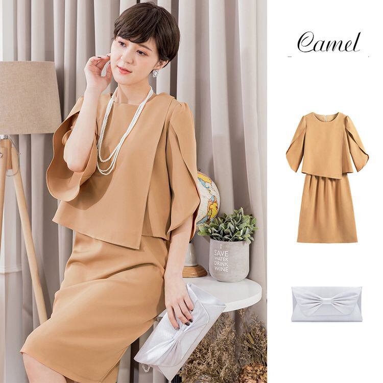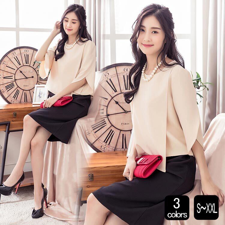 3COLOR セットアップ スカート スーツ フォーマル 膝丈 七分袖 パーティー 結婚式 ツーピース フェミニン レトロ クラシカル レディース ファッション 20代 30代 40代【送料無料】【予約商品】nc0325