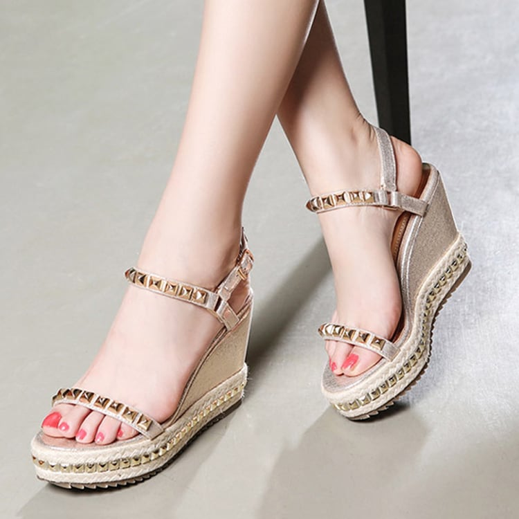 ゴールドカラーが大人可愛いオープントゥ厚底ウエッジサンダル【送料無料】【予約商品】nc0366