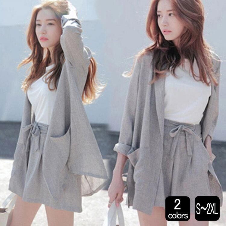 2COLOR セットアップ ツーピース ルーズスーツ ワイドレッグショート丈パンツ ジャケット ハーフパンツ ショートパンツ グレー カーキ 大きいサイズ 定番 おしゃれ ベーシック カジュアル 大人可愛い シンプル ナチュラル レディース【送料無料】【予約商品】nc0515