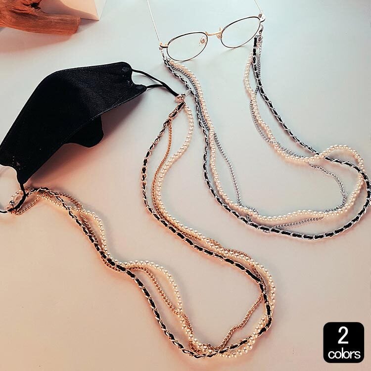 2COLOR アクセサリー マスクチェーン マスクストラップ メガネチェーン メガネストラップ ゴールド シルバー ブラック パール 3連チェーン 人気デザイン 合金 おしゃれ ベーシック クラシカル 大人可愛い シンプル カジュアル レディース【送料無料】【予約商品】nc0549