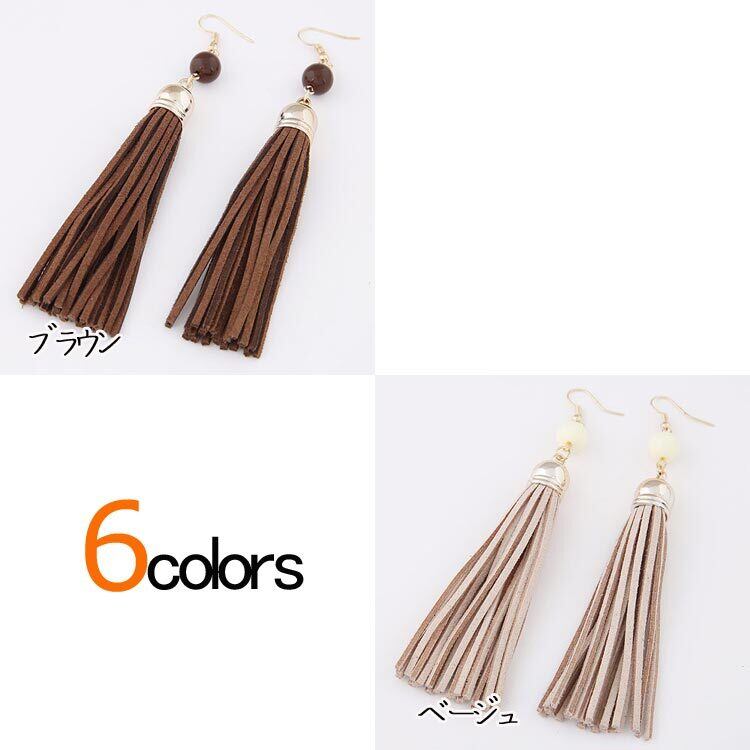 6COLOR アクセサリー ピアス タッセル ロングピアス グリーン ブラック レッド ベージュ ブルー ブラウン 人気デザイン 合金メッキ 定番 おしゃれ ベーシック クラシカル 大人可愛い シンプル カジュアル レディース【送料無料】【予約商品】nc0556